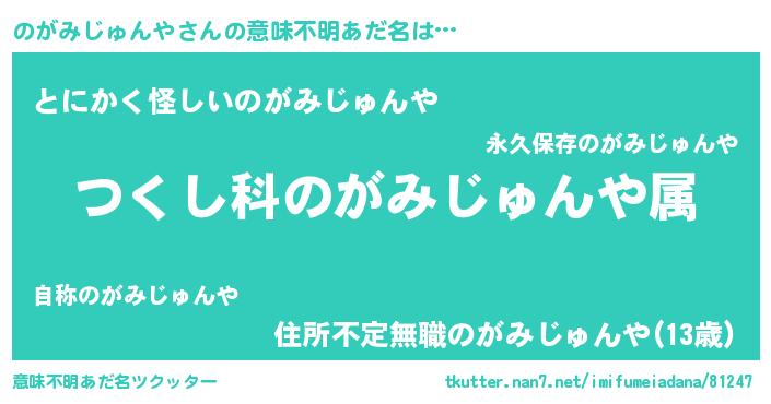 | 胡散臭い通販商品みたいなあだ名 | 『全米が絶賛したサプリメント…その名も「のがみじゅんや」』 |
