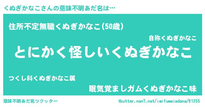 | ポケモン風あだ名 | 『メロクッヌ』『ヒクヌギカナコ』 |