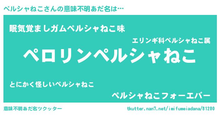 | 男性向けラノベタイトル風あだ名 | 『ペルシャネコアートオンライン』 |
