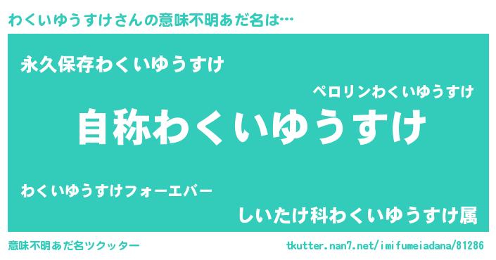 | ヘコむあだ名 | 『わくいゆうすけ(震え声)』『わくっふぃ~』 |