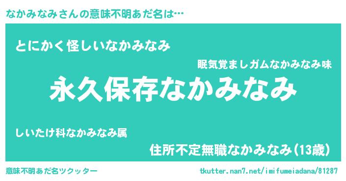 | 男性向けラノベタイトル風あだ名 | 『なかみなみという概念が存在しない退屈な世界 』 |