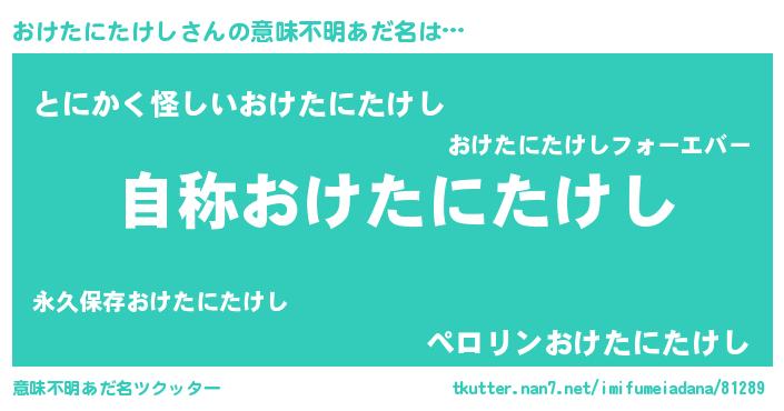 | 女子向けラノベタイトル風あだ名 | 『おけたにたけしストレイドッグス』 |