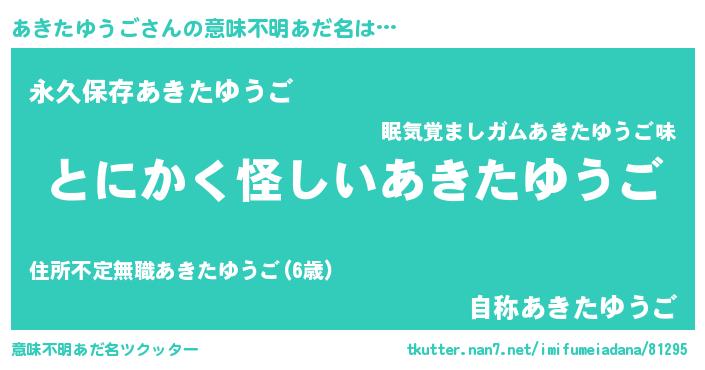 | ヘコむあだ名 | 『あきっ子』『あきたゆうご(爆)』 |