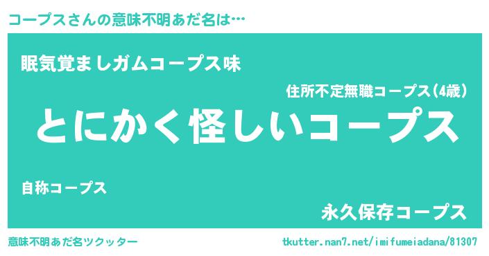 | 女子向けラノベタイトル風あだ名 | 『コープスは平凡を望む』 |