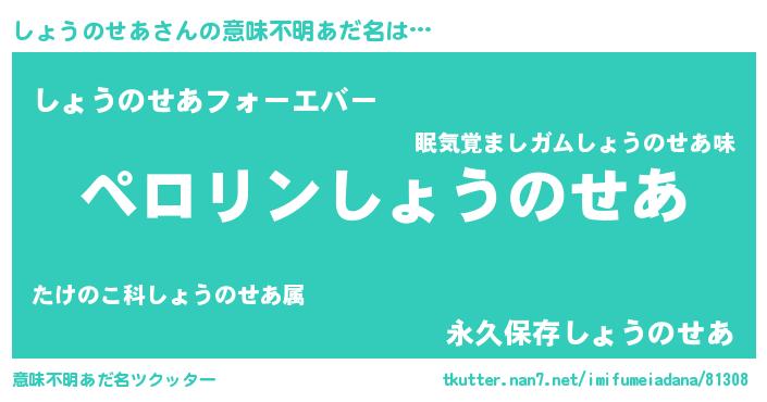 | 胡散臭い通販商品みたいなあだ名 | 『モテモテ間違いなし霊験あらたかなお札…その名も「しょうのせあ」』 |
