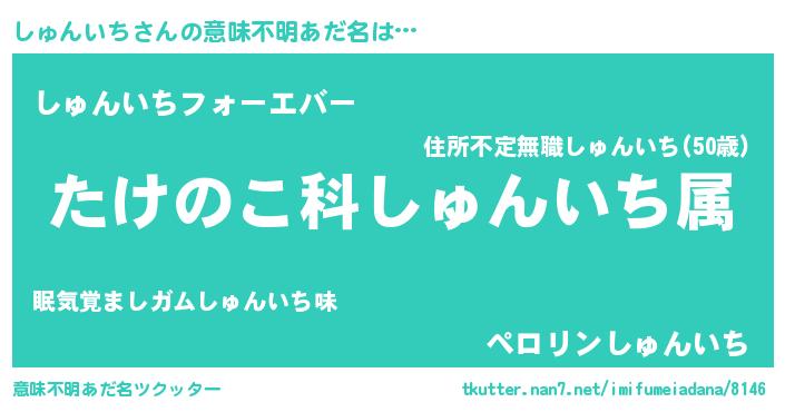 | 男性向けラノベタイトル風あだ名 | 『転生したらしゅんいちだった件』 |