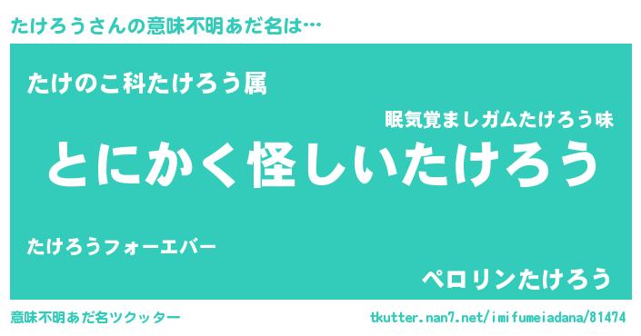 | ヒーロー風カッコイイあだ名 | 『幻影騎士タケ』『スーパータケロウ』 |