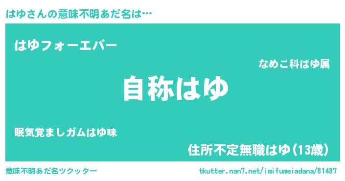 | 肩書あだ名 | 『はゆ閣下』『はゆ国家主席』 |