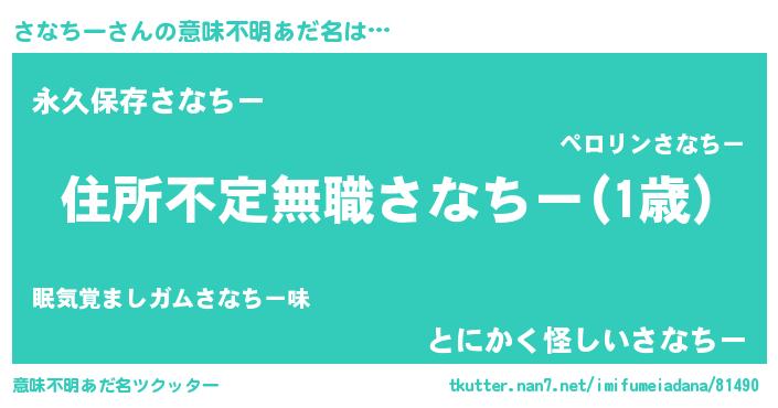 | 男性向けラノベタイトル風あだ名 | 『この素晴らしい世界にさなちーを!』 |