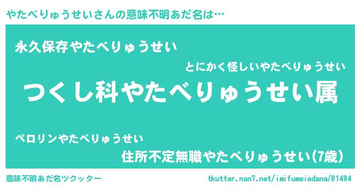 | 伝説のあだ名 | 『古文書に記された勇者やたべりゅうせい』 |