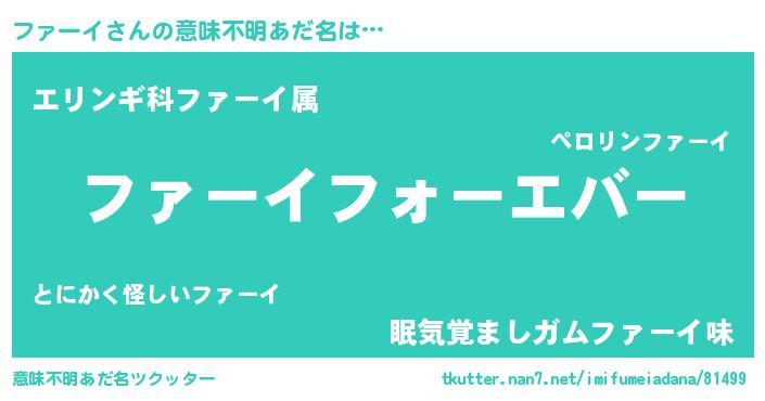 | 男性向けラノベタイトル風あだ名 | 『やはりファーイの青春ラブコメはまちがっている 』 |