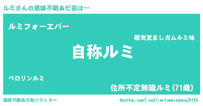 | 男性向けラノベタイトル風あだ名 | 『Re:ルミから始める異世界生活』 |