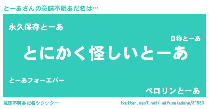 | 可愛いあだ名 | 『とっーぃー』『とーあママ』 |