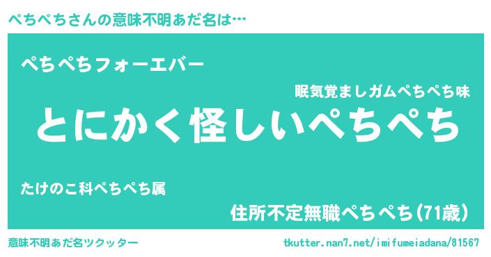 | ヒーロー風カッコイイあだ名 | 『天弓騎士ペチ』『ウルトラぺちぺちマン』 |