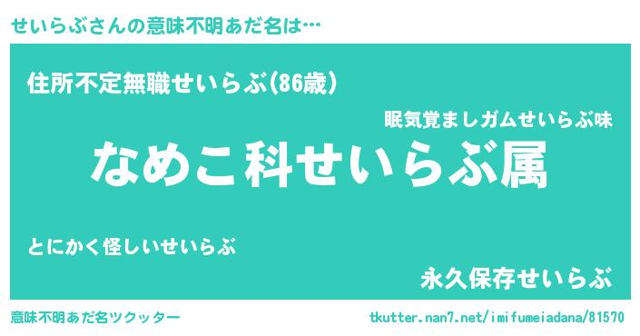 | ヘコむあだ名 | 『せいらぶ(爆)』『せいっちょ』 |