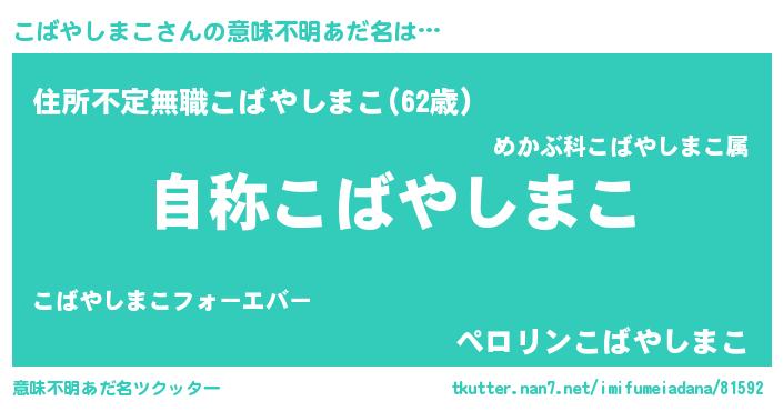 | 肩書あだ名 | 『こばやしまこ閣下』『こばやしまこ教官』 |