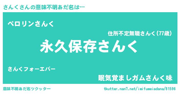 | 男性向けラノベタイトル風あだ名 | 『さんくという概念が存在しない退屈な世界 』 |