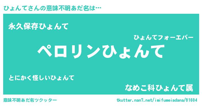 | 欧米人風あだ名 | 『ひょんて・ステッグマイヤー』 |