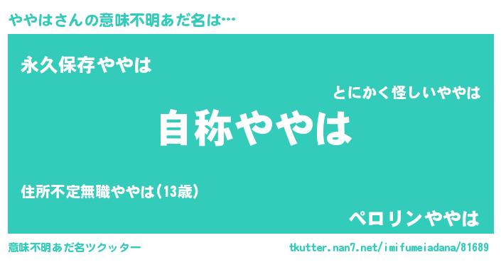 | ヘコむあだ名 | 『ややは(笑)』『ややにゅー』 |