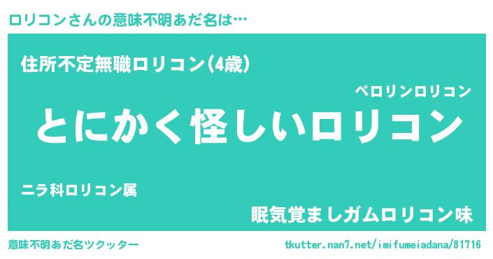 | 男性向けラノベタイトル風あだ名 | 『ロリコンの嫁は女の子じゃないと思った?』 |
