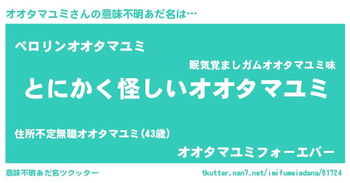 | 男性向けラノベタイトル風あだ名 | 『オオタマユミの嫁は女の子じゃないと思った?』 |