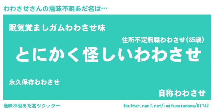 | ポケモン風あだ名 | 『ヒワワサセ』『ワックウザ』 |