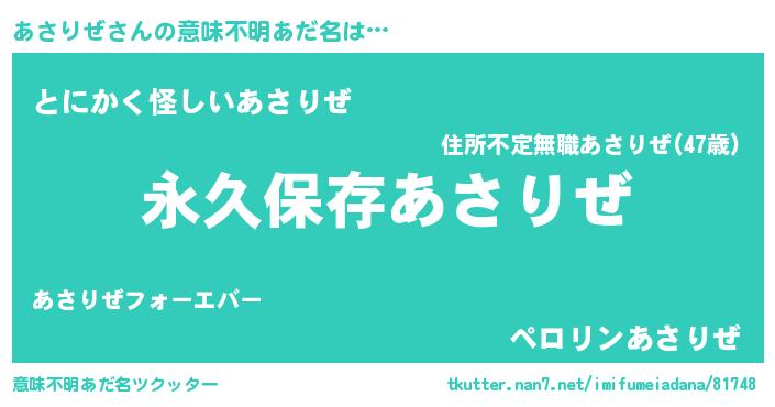 | ポケモン風あだ名 | 『ゼニアサ』『ヒアサリゼ』 |