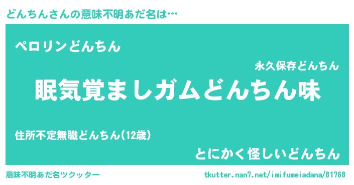 | 女子向けラノベタイトル風あだ名 | 『死神どんちんの再婚』 |