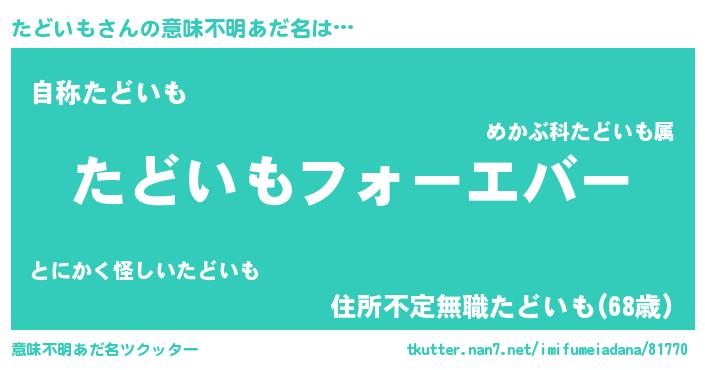 | 女子向けラノベタイトル風あだ名 | 『たどいもの雑貨屋さん』『闇のたどいも』 |