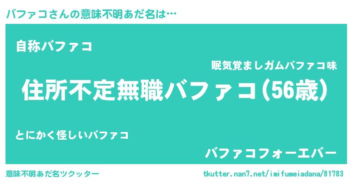 | ヒーロー風カッコイイあだ名 | 『仮面バフダー』『最強戦士バファコ』 |