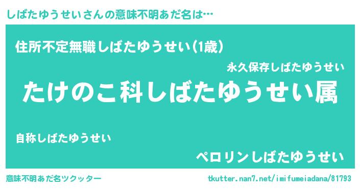 | ヒーロー風カッコイイあだ名 | 『仮面シバダー』『ネオシバタユウセイ』 |
