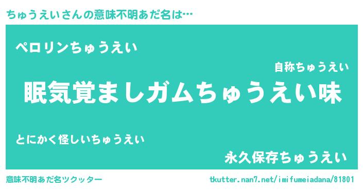 | 肩書あだ名 | 『ちゅうえい助手』『ちゅうえい社長』 |