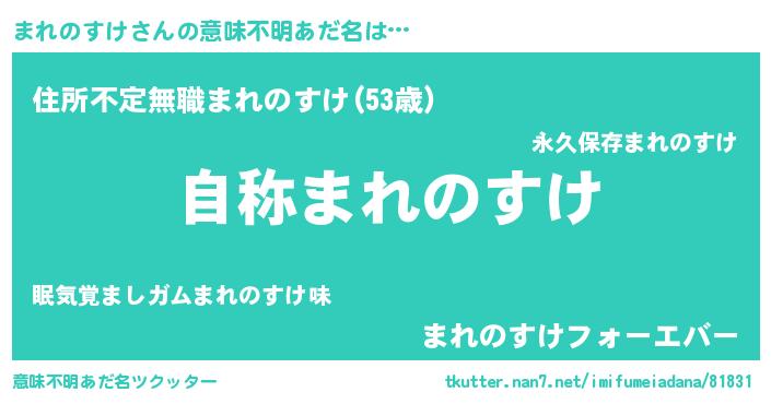 | 男性向けラノベタイトル風あだ名 | 『Re:まれのすけから始める異世界生活』 |
