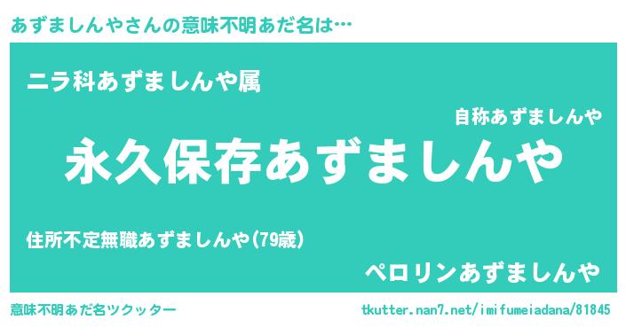 | 男性向けラノベタイトル風あだ名 | 『あずましんやという概念が存在しない退屈な世界 』 |