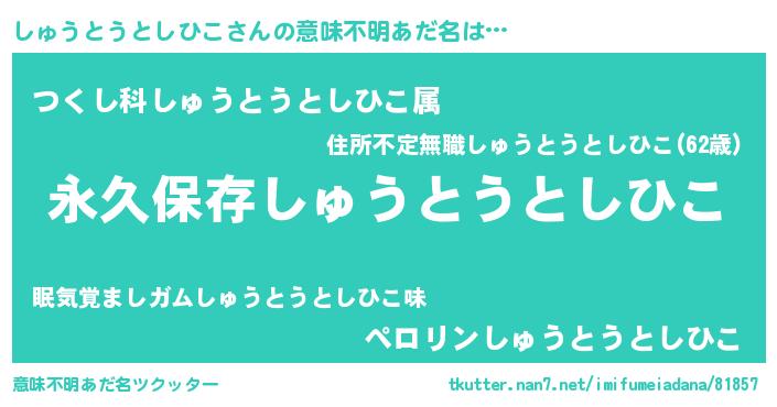 | 胡散臭い通販商品みたいなあだ名 | 『前代未聞の健康食品…その名も「しゅうとうとしひこ」』 |