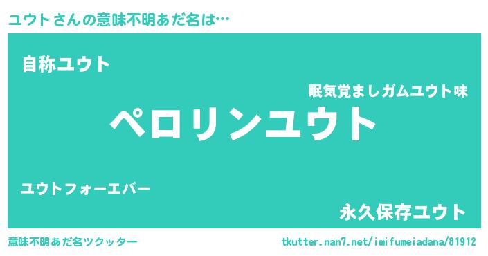 | ヘコむあだ名 | 『ユウっふぃ~』『ユウト(笑)』 |