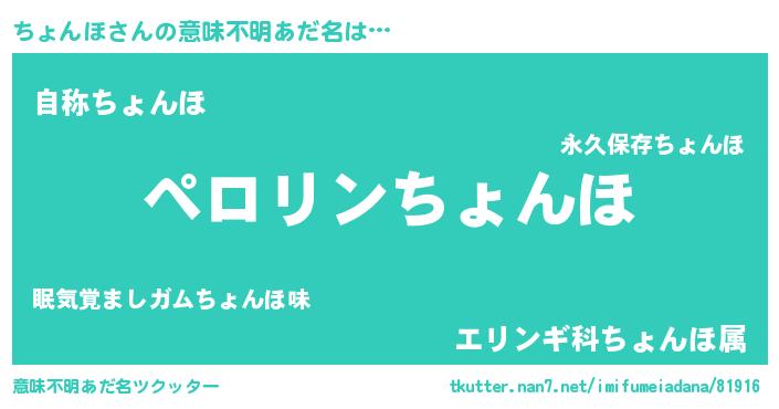 | ヘコむあだ名 | 『ちょにゅー』『ちょんほ(笑)』 |