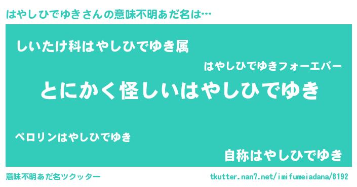 | ポケモン風あだ名 | 『メロハッヤ』『ヒハヤシヒデユキ』 |