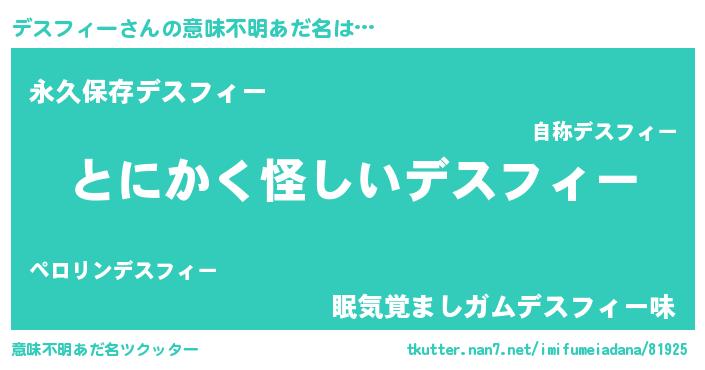 | 胡散臭い通販商品みたいなあだ名 | 『信頼と実績のサプリメント…その名も「デスフィー」』 |