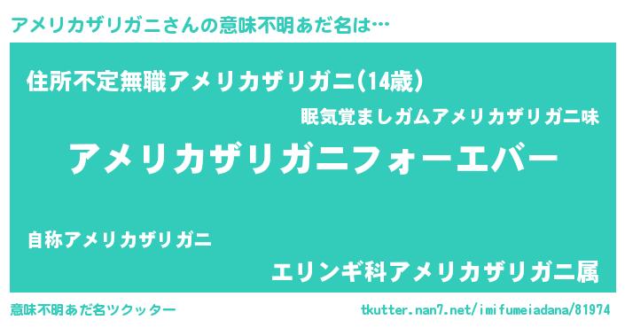 | ファンタジー風あだ名 | 『エターナルアメリカザリガニー』 |