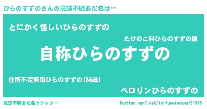 | 胡散臭い通販商品みたいなあだ名 | 『ガンによく効くアガリクス…その名も「ひらのすずの」』 |