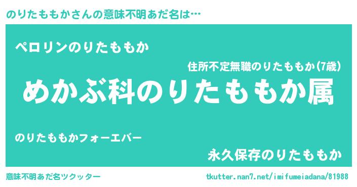 | 胡散臭い通販商品みたいなあだ名 | 『必ず成功するブレスレット…その名も「のりたももか」』 |