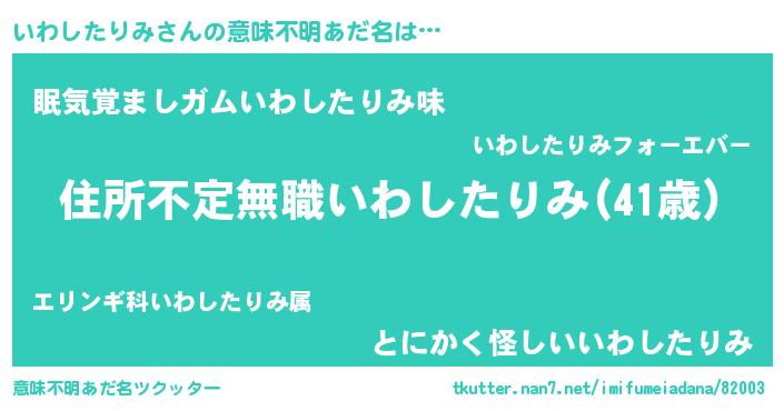 | 男性向けラノベタイトル風あだ名 | 『この素晴らしい世界にいわしたりみを!』 |