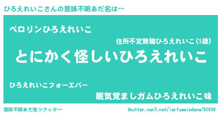 | ポケモン風あだ名 | 『ヒヒロエレイコ』『ヒロチュウ』 |