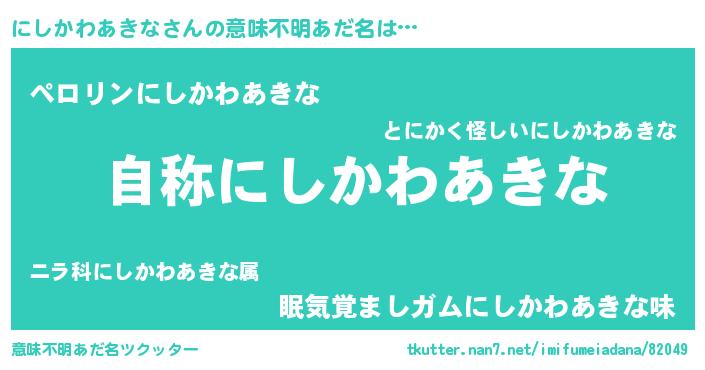 | 肩書あだ名 | 『にしかわあきな閣下』 |