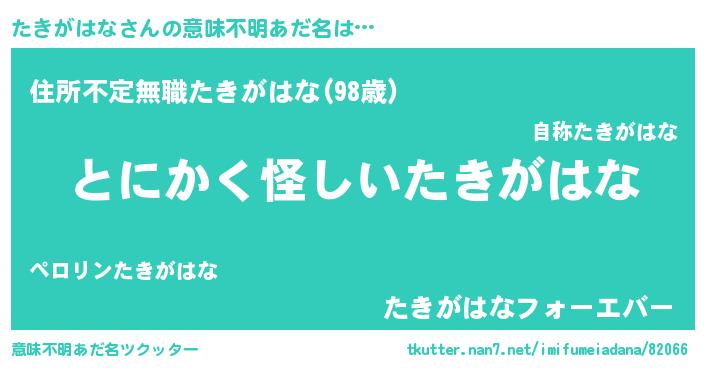 | 女子向けラノベタイトル風あだ名 | 『たきがはな様がみてる』 |
