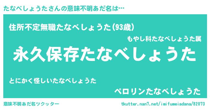 | 胡散臭い通販商品みたいなあだ名 | 『絶対に幸福をもたらす水素水…その名も「たなべしょうた」』 |
