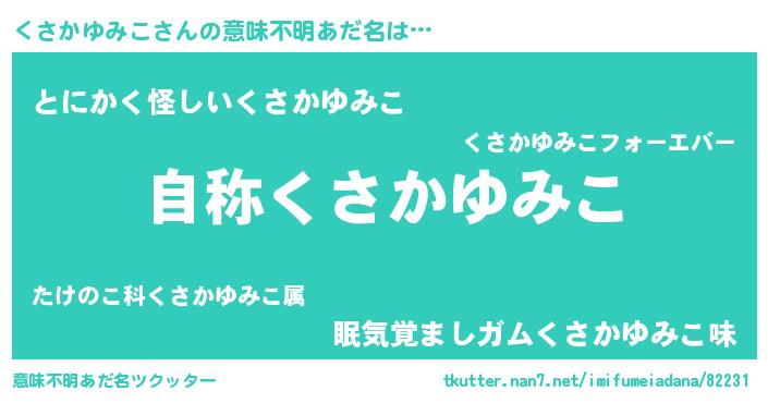 | 男性向けラノベタイトル風あだ名 | 『Re:くさかゆみこから始める異世界生活』 |