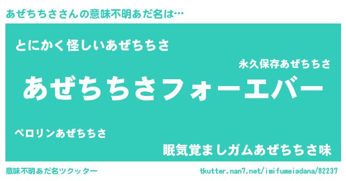| ポケモン風あだ名 | 『アゼチダネ』『ヒアゼチチサ』 |