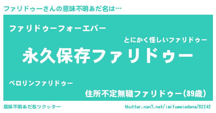 | ファンタジー風あだ名 | 『ファディッシュ』『ヴァルファーナ』 |